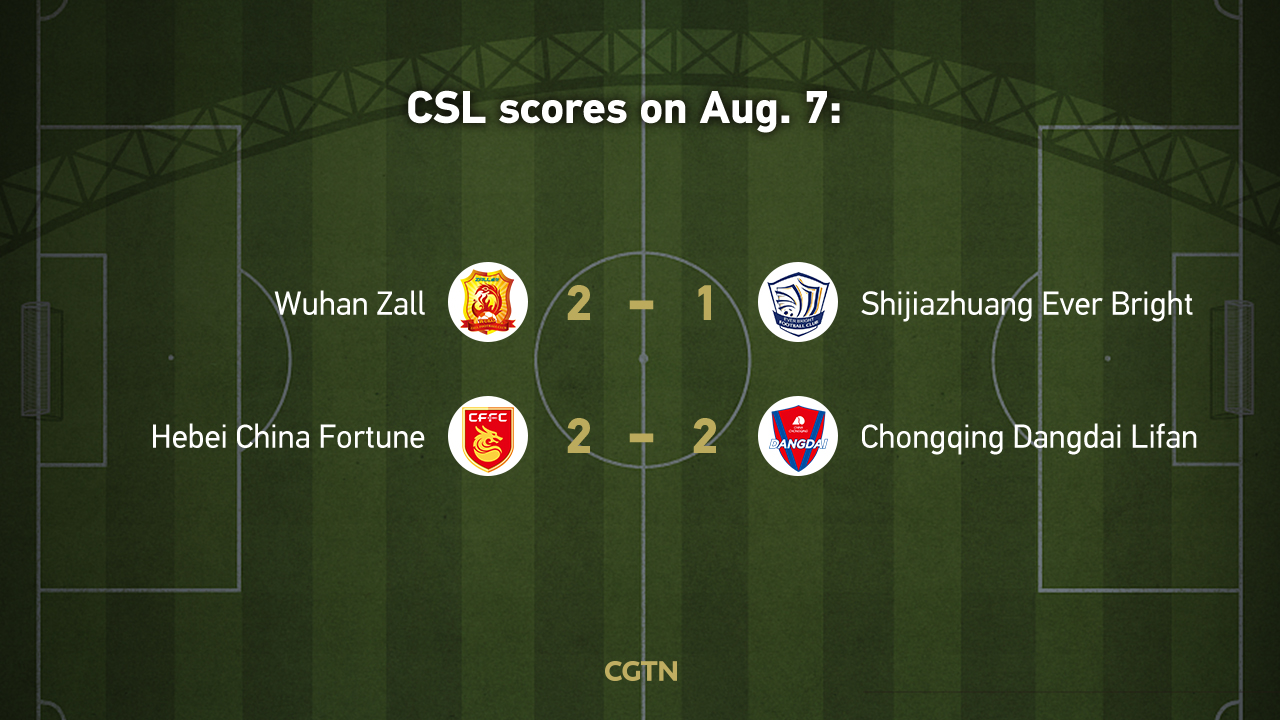 Also on Friday, Hebei China Fortune drew 2-2 with Chongqing Dangdai Lifan.