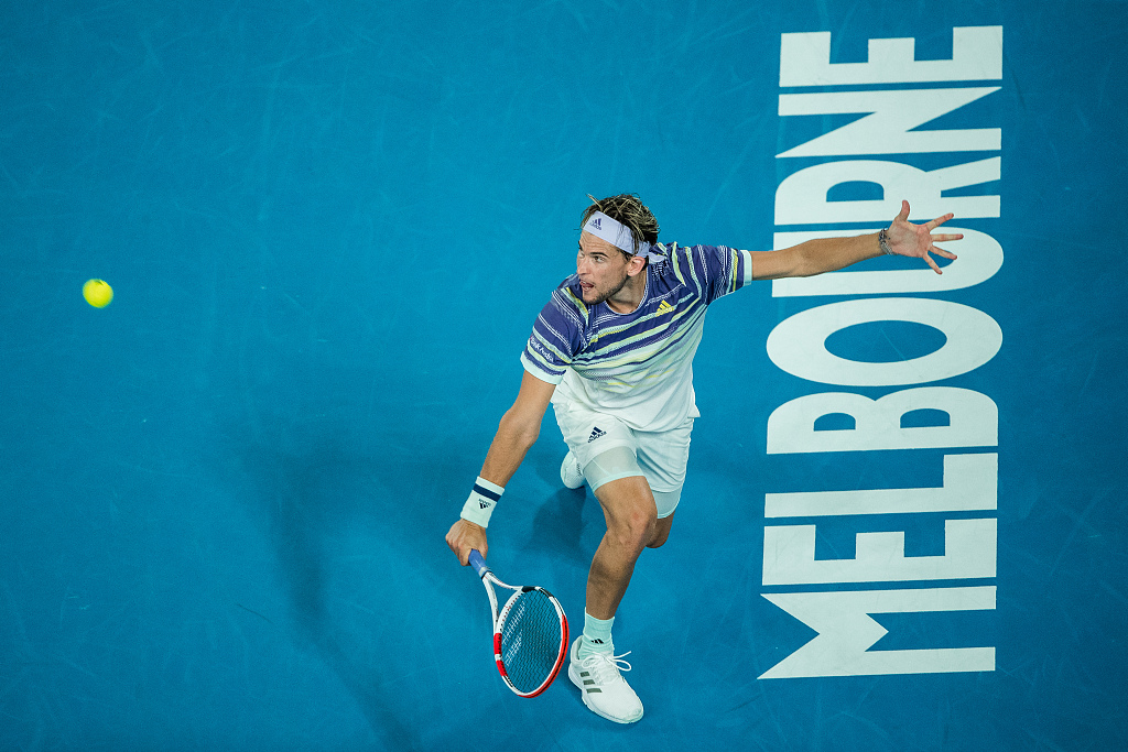 Dominic Thiem of Austria plays a backhand in his quarter final match during the 2020 Australian Open in Melbourne, Australia, January 29, 2020. /VCG