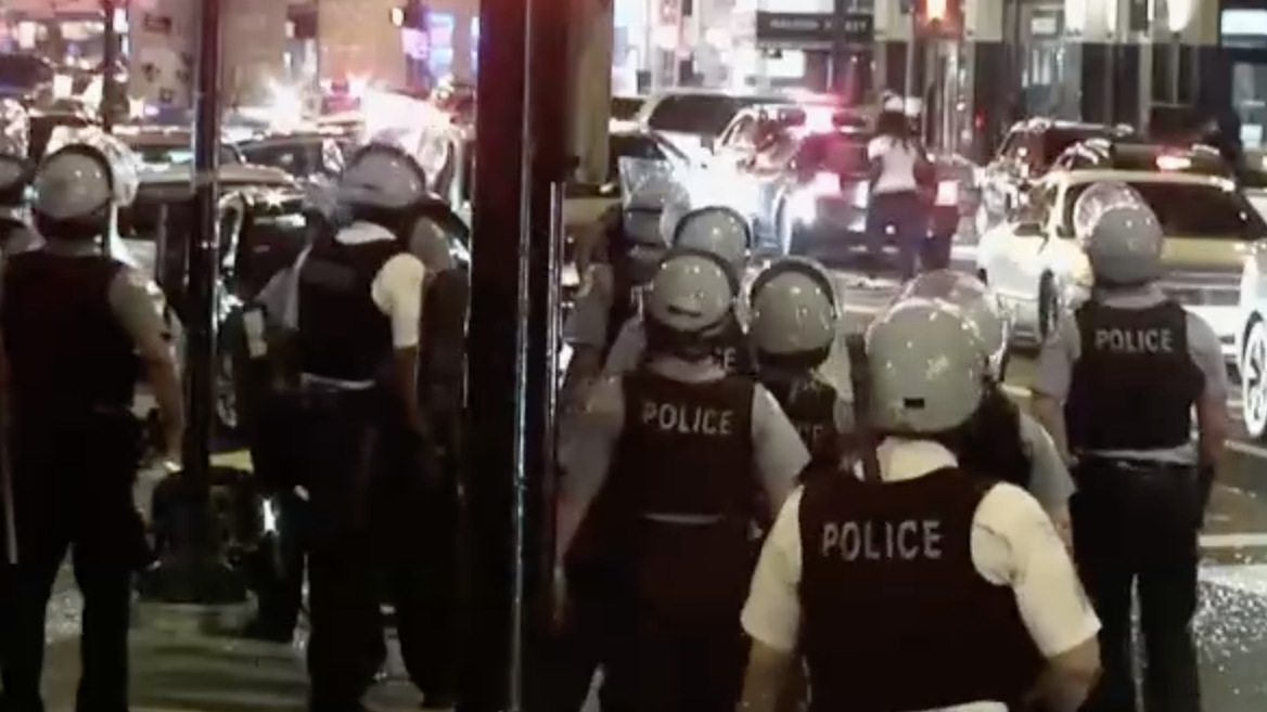 Large crowds clashed with police as rioters vandalized stores in downtown Chicago, with officers returning shots after being targeted by gunfire. More than 100 people were arrested and 13 officers wounded as rioters smashed windows and looted high-end stores.