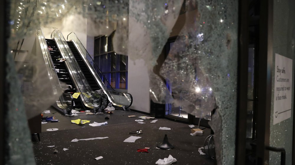 Videos of the vandalism showed huge crowds of people smashing their way into businesses and streaming out of the broken windows and doors with clothes and other merchandise. They loaded up vehicles, some moving slowly and deliberately, apparently not worried about being caught by police or being recorded by scores of cellphone cameras.
