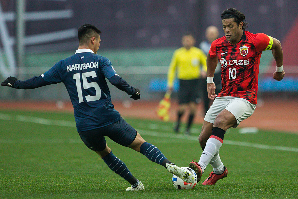 Shanghai SIPG's Brazilian star Hulk (R) in action during their AFC Champions League qualifier against Buriram United at Yuanshen Sports Center Stadium in Shanghai, China, January 28, 2020. /VCG