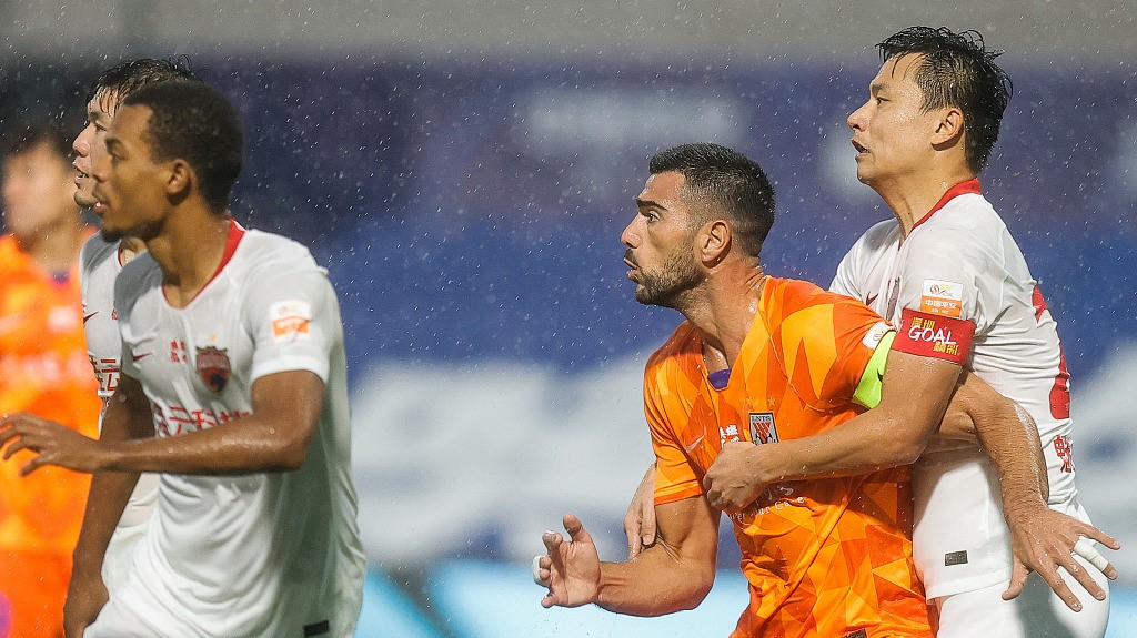 Graziano Pelle of Shandong Luneng Taishan in the CSL game against Shenzhen F.C. in Dalian, east China's Liaoning Province, August 15, 2020. /VCG