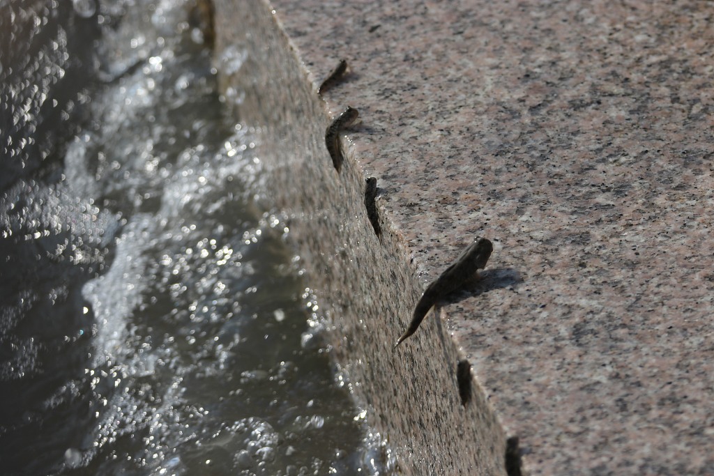 In an August 2020 afternoon, mudskippers took full advantage of high tide to jump on to the seawall and basked in the sun of Jiaozhou Bay in Qingdao City in east China's Shandong Province.