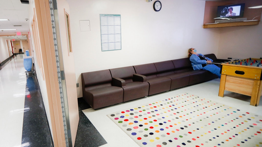 A healthcare professional takes a break in the employee respite facility at NYC Health + Hospitals Metropolitan, in New York City, May 27, 2020. /AP