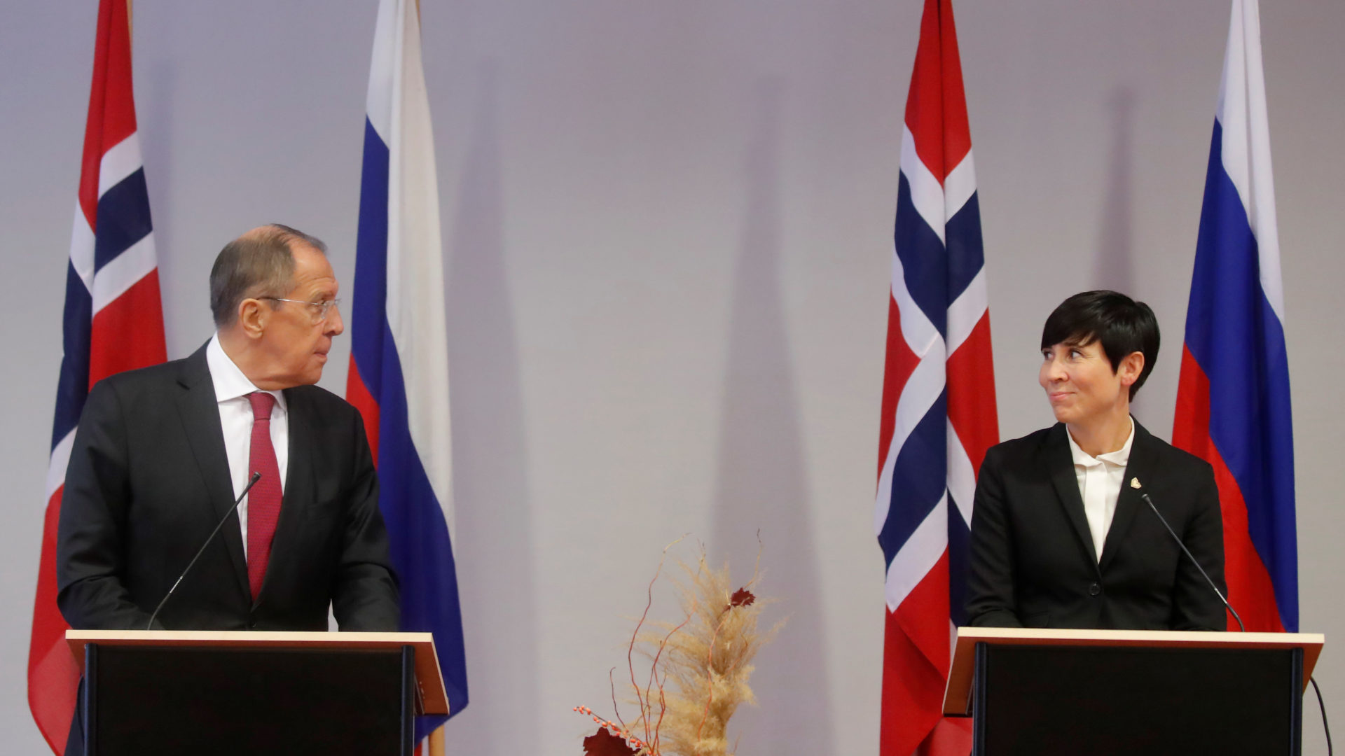 Russia's Foreign Minister Sergei Lavrov and Norway's Foreign Minister Ine Eriksen Soreide attend a news conference following talks in Kirkenes, northern Norway, October 25, 2019. /Reuters