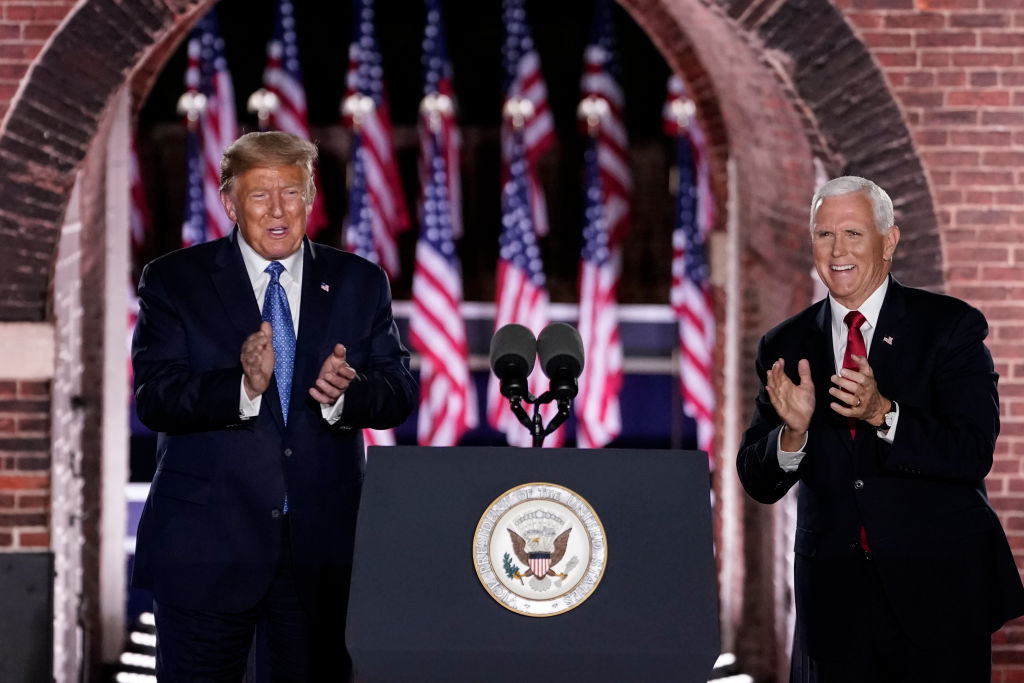 U.S. President Donald Trump attends Mike Pence's acceptance speech for the vice presidential nomination during the Republican National Convention at Fort McHenry National Monument in Baltimore, Maryland, August 26, 2020. /Getty Images