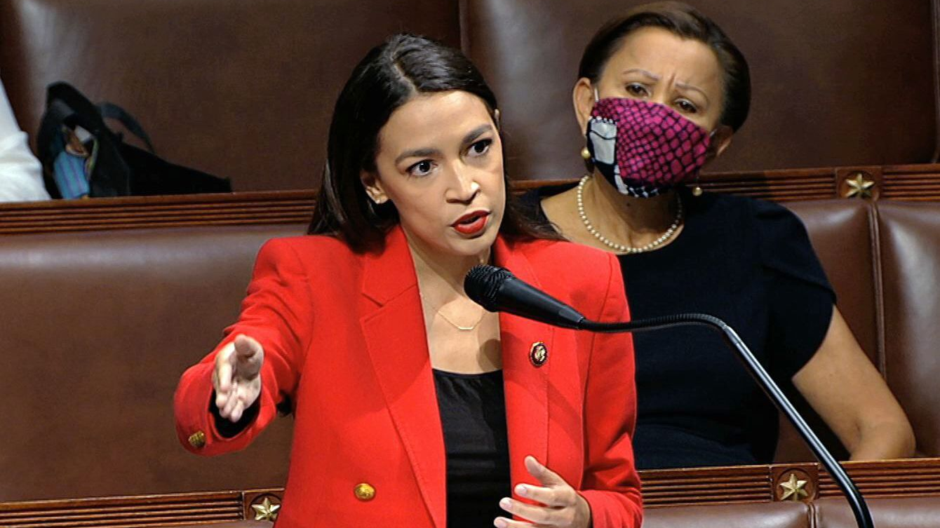 Representative Alexandria Ocasio-Cortez, a self-described "democratic socialist," endorsed Kennedy's opponent in this election. /AP