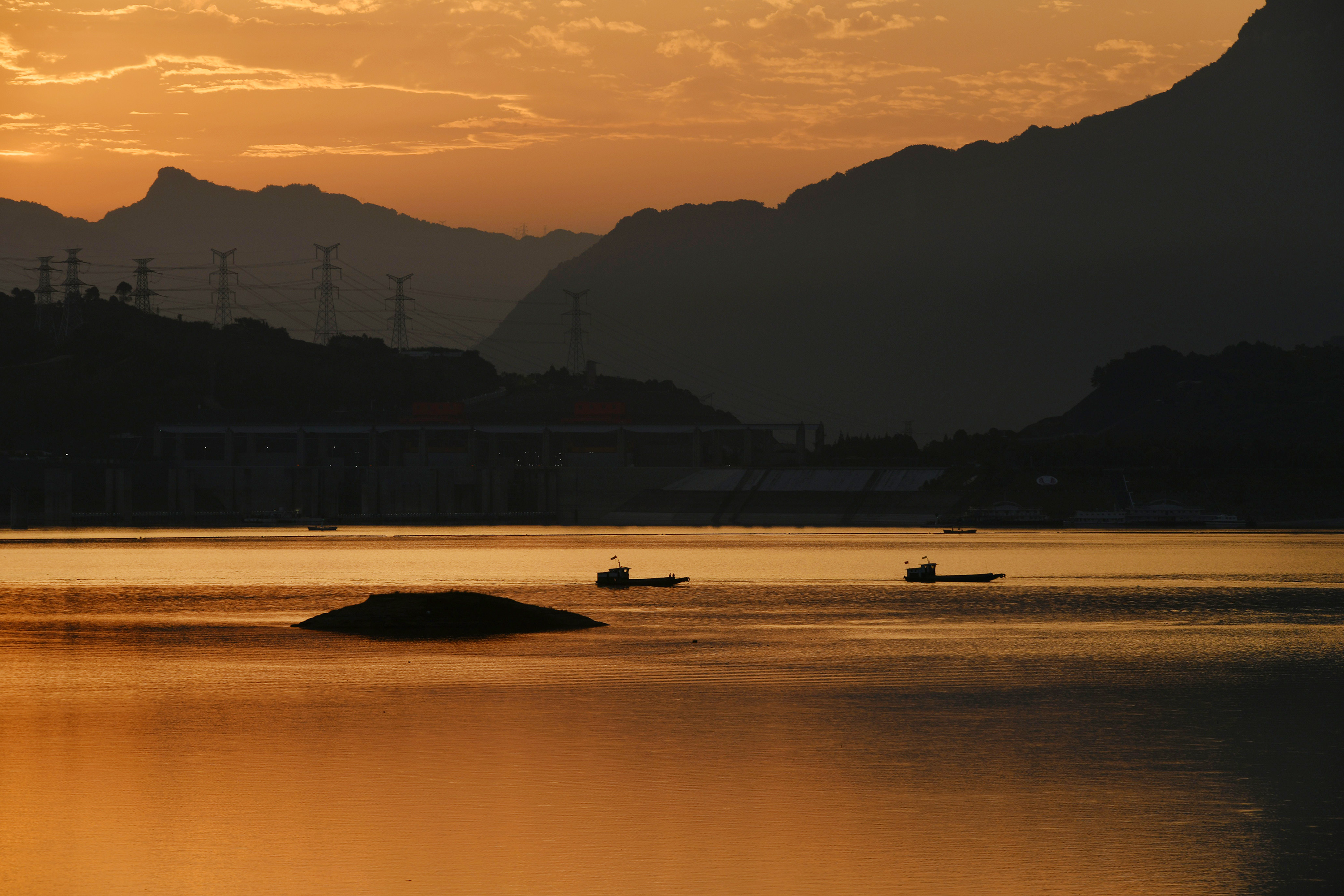 In Yichang City in central China's Hubei Province, the sun rises gently and casts golden shades over the water at Three Gorges Dam, creating a picturesque view. The dam has been the world's largest power station in terms of installed capacity.