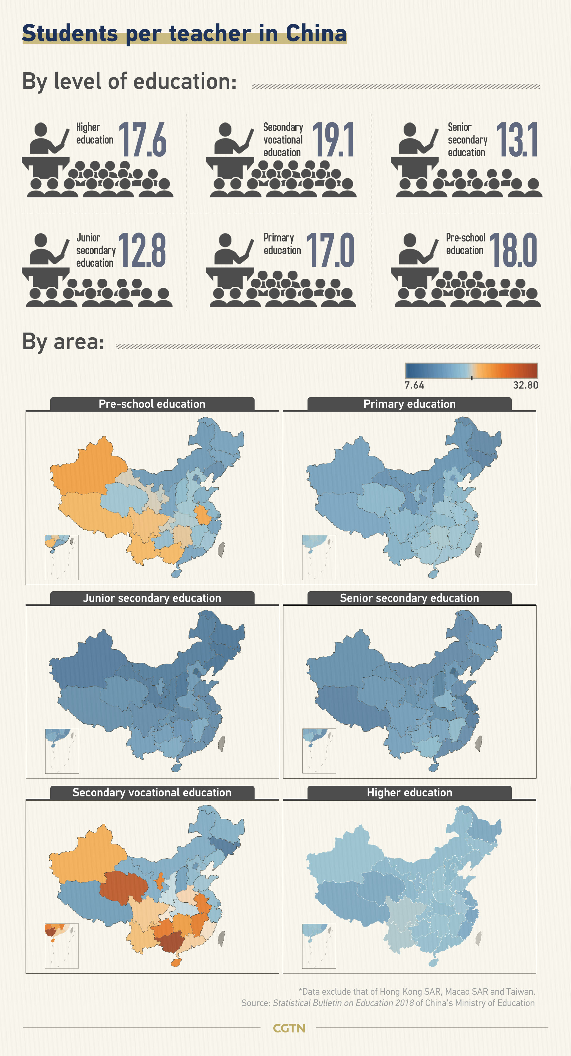 From 2013 to 2019, the central government's budgetary spending amounted to 13.5 billion yuan (1.9 billion U.S. dollars) on training programs, during which time 19.8 billion yuan in grants and subsidies were provided to rural teachers.