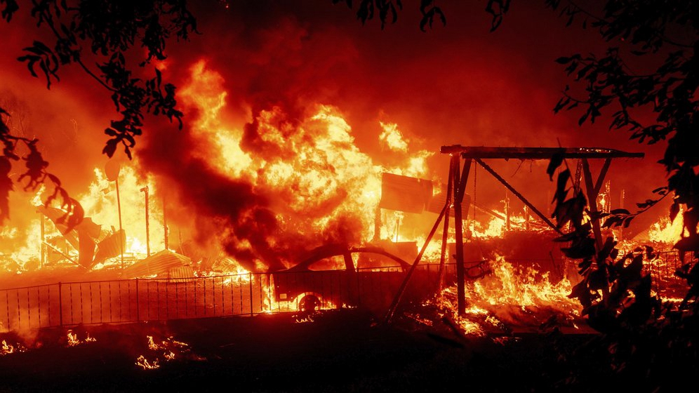 Flames consume a home and car as the Bear Fire burns through the Berry Creek area of Butte County, California, U.S., September 9, 2020. /AP