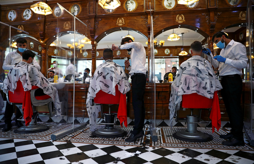 Savvas Barbers reopens during the outbreak of the coronavirus disease, London, UK, July 4, 2020. /Reuters