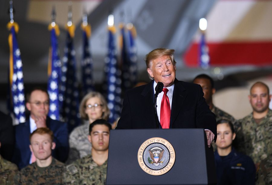 U.S. President Donald Trump speaks at a signing ceremony for the National Defense Authorization Act for Fiscal Year 2020 at Joint Base Andrews, Maryland, U.S. December 20, 2019. /Xinhua