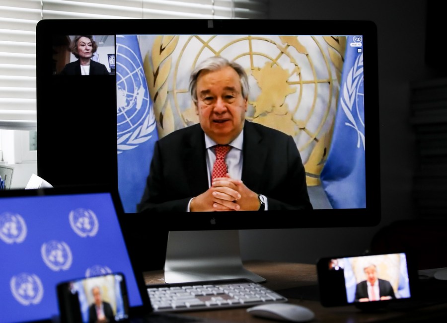 UN Secretary-General Antonio Guterres speaks during a high-level virtual event in New York, September 25, 2020. /Xinhua