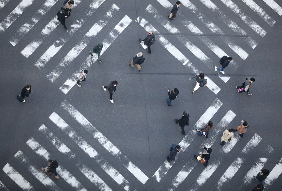 Pedestrians wearing masks walk in the street at Ginza in Tokyo, Japan, March 6, 2020. /Xinhua