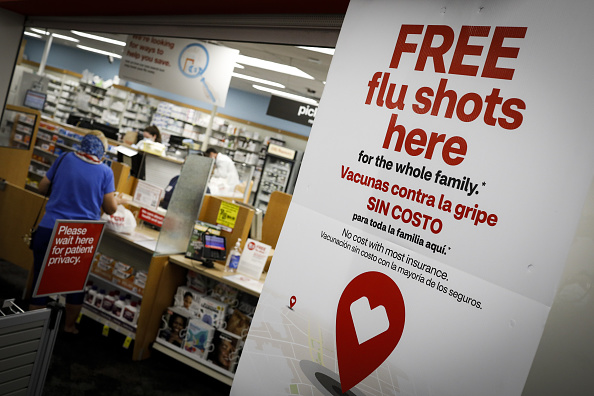 A free flu shot availability sign is displayed at a CVS Health Corp. Pharmacy in Miami, Florida, U.S., on Wednesday, Sept. 30, 2020. /Getty