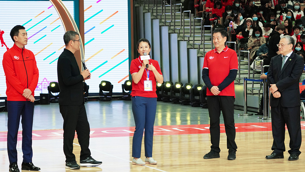 Yang Yang, China's first Winter Olympics' gold medalist speaks during the Yao Foundation charity game in Wuhan, central China's Hubei Province, October 4, 2020. /VCG
