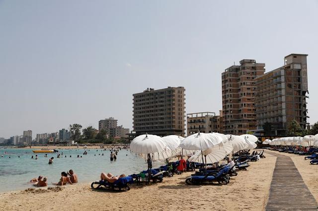 File photo: Varosha, an area fenced off by the Turkish military since the 1974 division of Cyprus, is seen from a beach in Famagusta, Cyprus, August 5, 2019. /Reuters