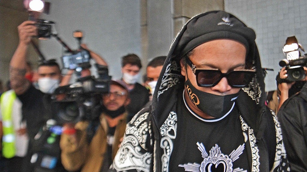 Ronaldinho is pictured upon arriving on a private jet at El Galeao airport in Rio de Janeiro, Brazil, August 25, 2020. /CFP