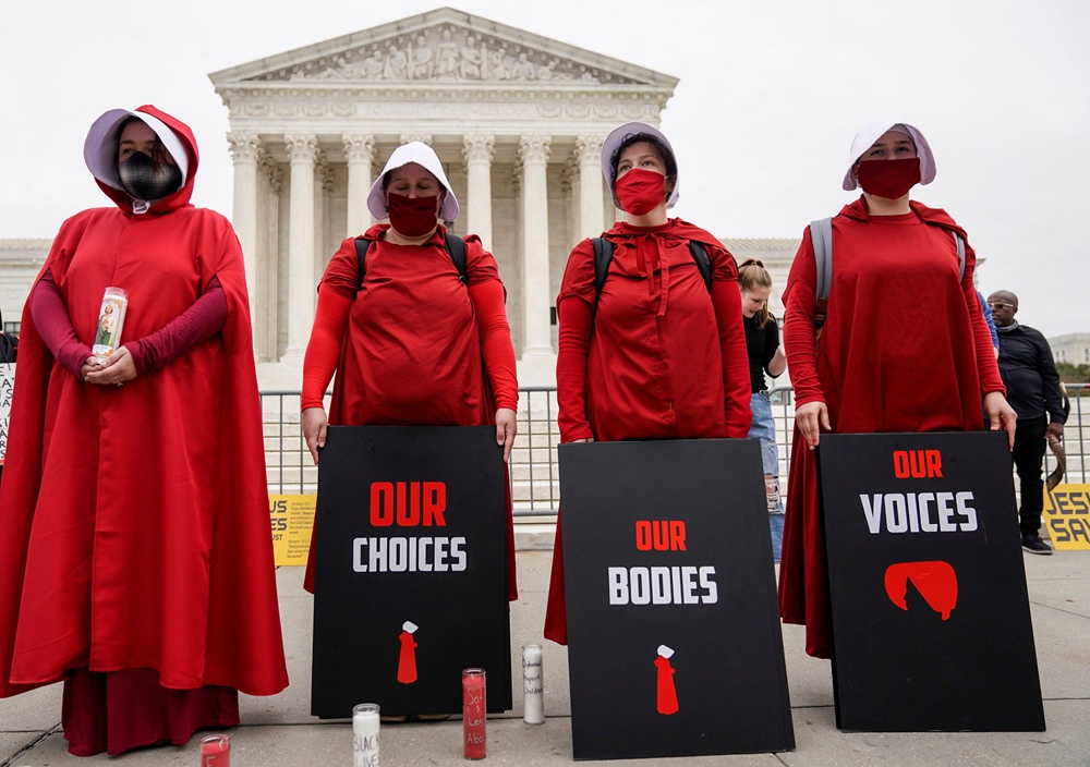 Activists opposed to the nomination of Amy Coney Barrett to the Supreme Court stand at the Supreme Court in Washington, U.S., October 26, 2020. /Reuters