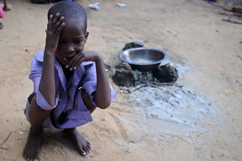 A displaced Somali child at a makeshift camp in the Garasbaley area on the outskirts of the capital Mogadishu. /AFP