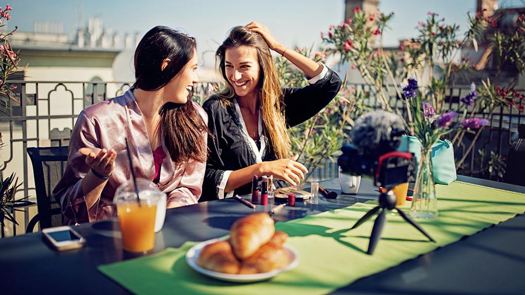 A host sells cosmetics via livestreaming in Slovenia. /VCG