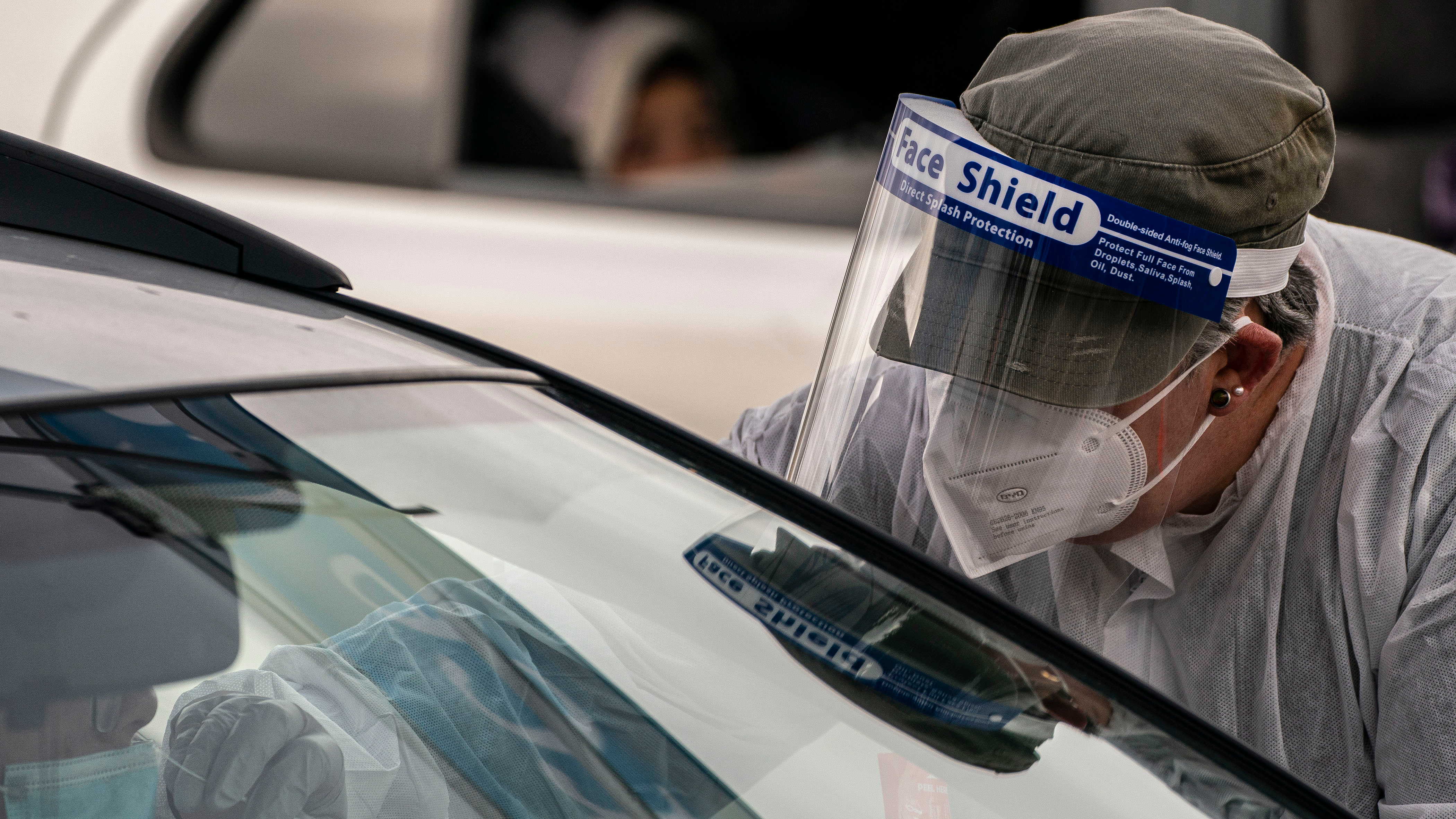 A nurse administers a test during a COVID-19 testing and flu shot event at the Tacoma Dome, November 28, 2020 in Tacoma, Washington. /Getty Images