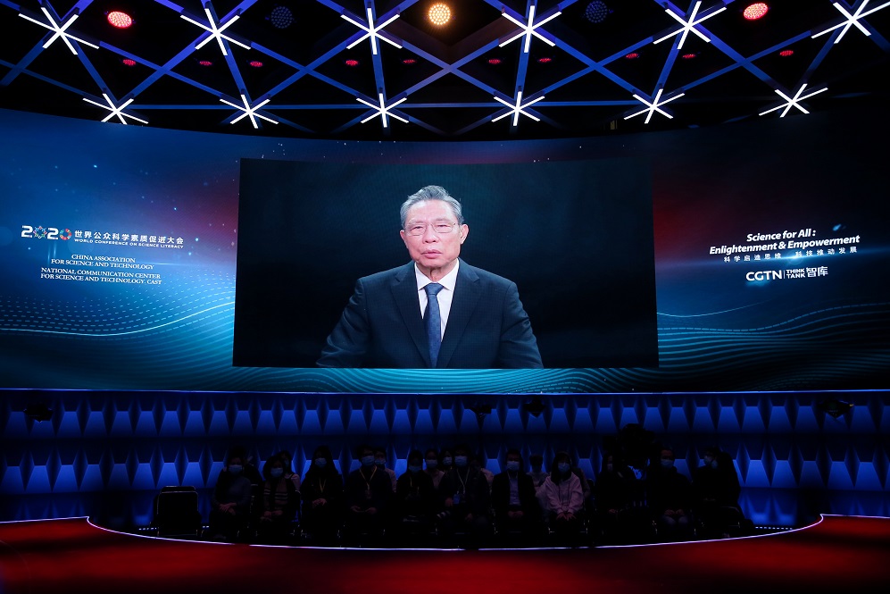 China's top respiratory expert Zhong Nanshan delivering his speech at the TV forum highlighting the importance of science literacy, December 8, 2020. /CCTV
