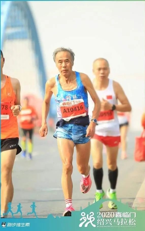 Huang Caifu runs in the Shaoxing Marathon in Shaoxing, east China's Zhejiang Province, November 8, 2020. /WeChat