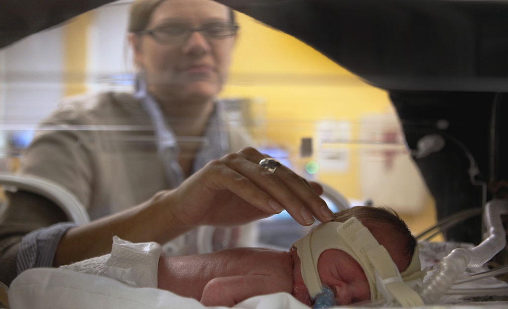 In the Neonatal Intensive Care Unit (NICU) at Tufts New England Medical Center in Boston, Tanya Ianniello, 32, of the Fenway checked up on her daughter, Ruby, 16 days old, December 13, 2011. /Getty