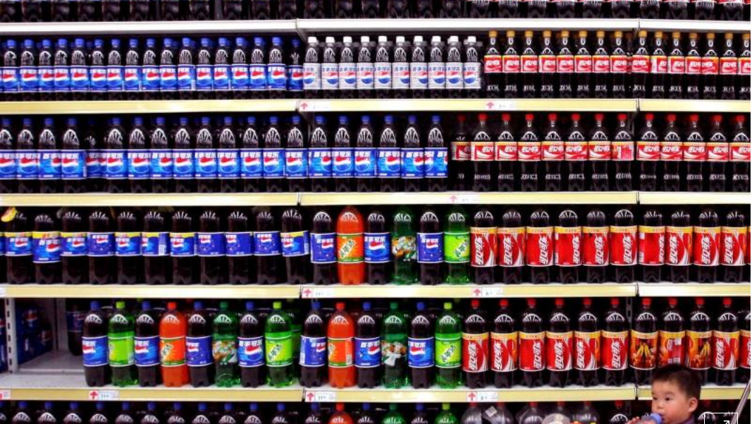 Top photo: Shelves of bottled beverages on sale at a supermarket in Nanjing in China's eastern Jiangsu Province. /Reuters