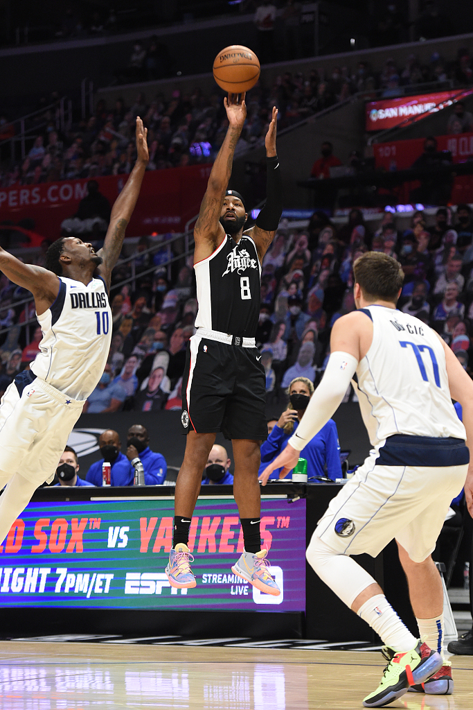 Marcus Morris (#8) of the Los Angeles Clippers shoots in Game 7 of the NBA Western Conference first-round playoffs against the Dallas Mavericks at Staples Center, June 6, 2021. /CFP