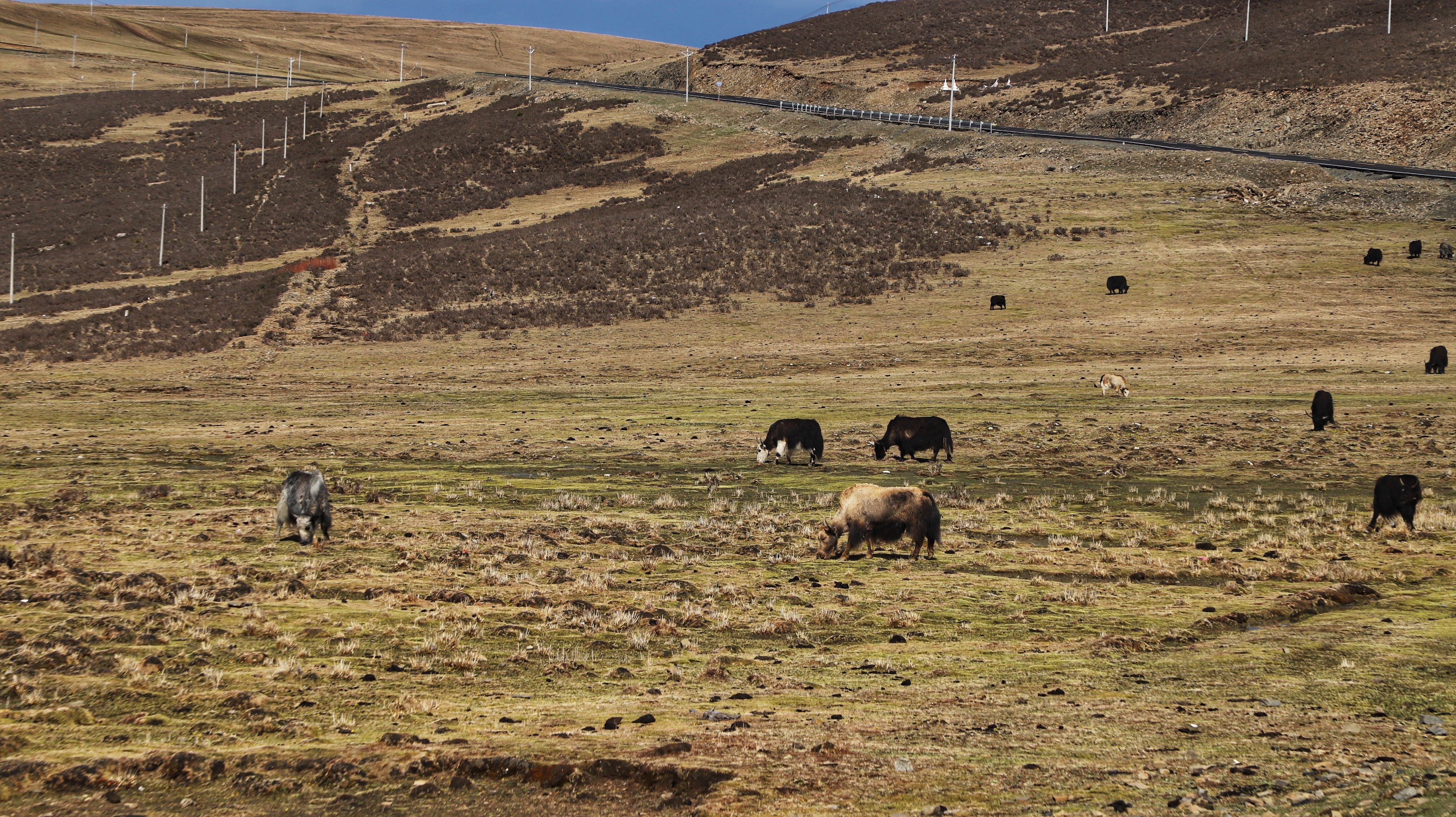 As the temperature rises, the grassland and the mountains are beginning to turn green, bringing life to the plateau.