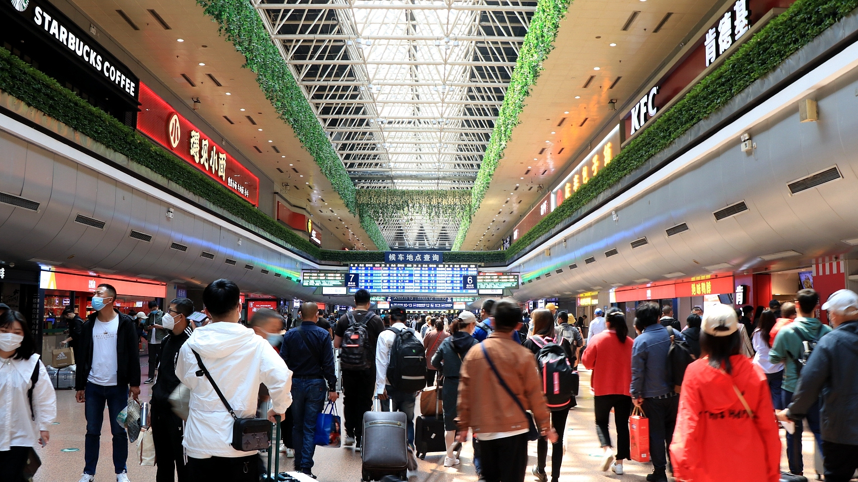 Passengers in Beijing West Railway Station, May 3, 2021. /CFP