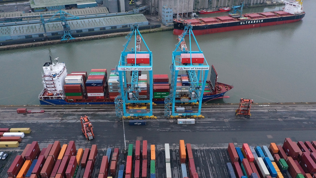 Shipping containers are stacked on the dockside at the Port of Liverpool, UK, December 10, 2020. /CFP
