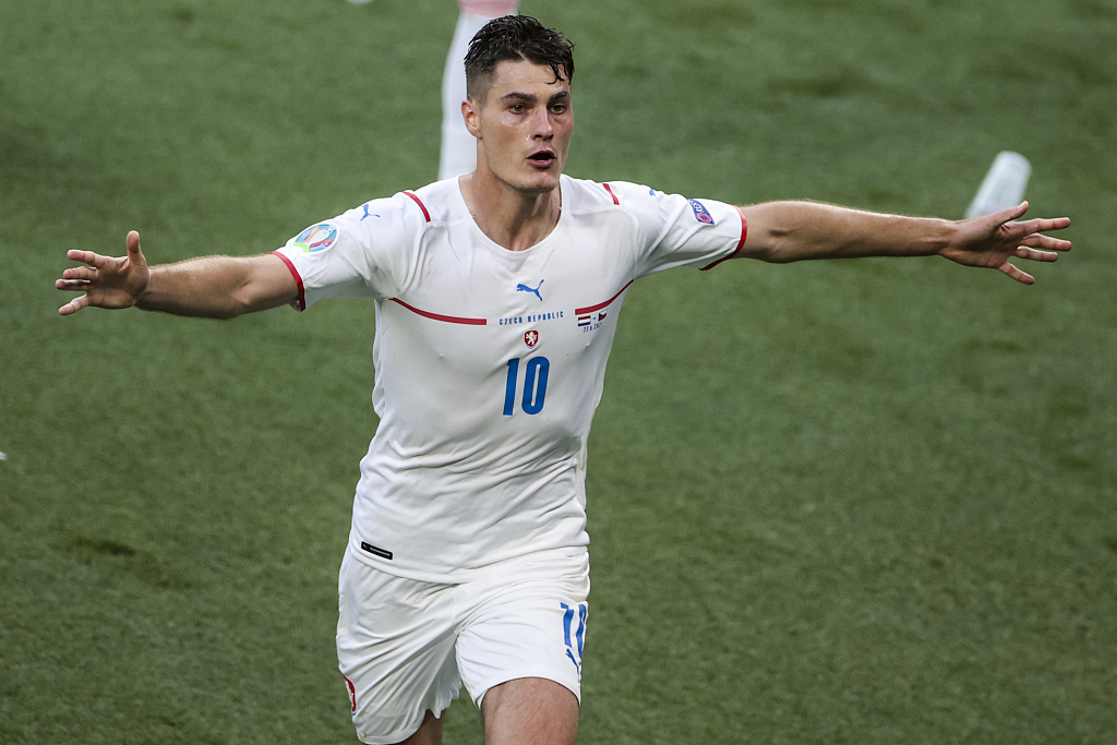 Patrik Schick of the Czech Republic celebrates after scoring a goal in the UEFA European Championship Round of 16 game against the Netherlands at Ferenc Puskas Arena in Budapest, Hungary, June 27, 2021. /CFP