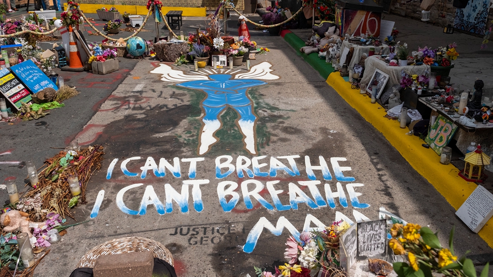 A mural reading "I Can't Breathe" at George Floyd Square in Minneapolis, Minnesota, May 25, 2021. /CFP