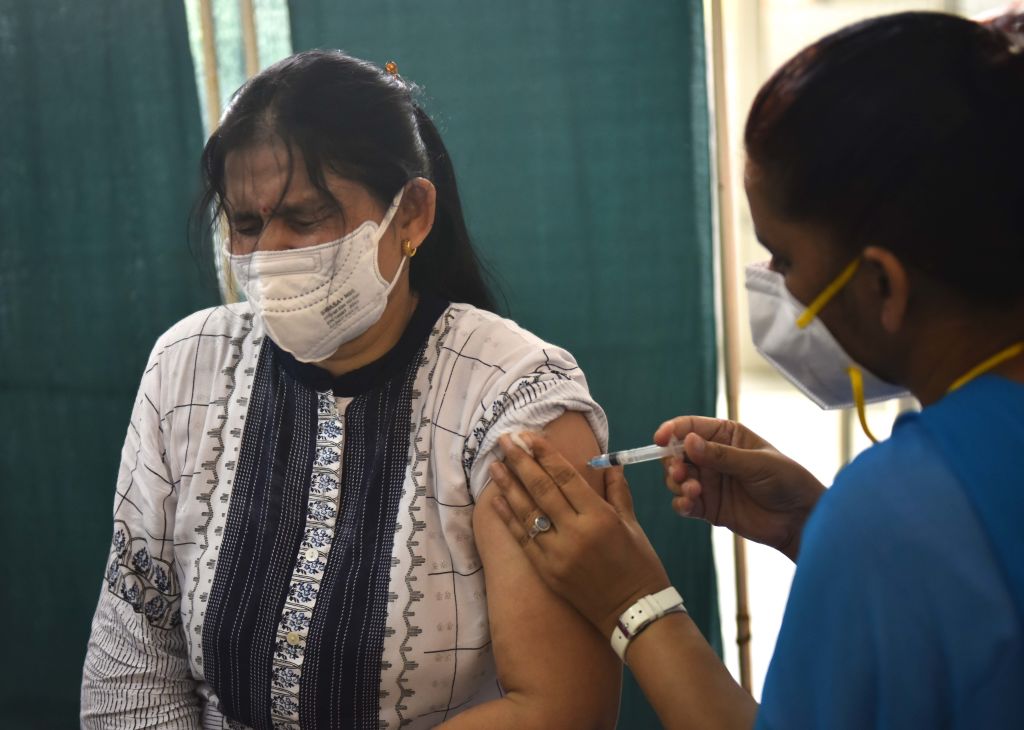 A woman receives her second dose of a Covid-19 vaccine, at a Polylinic, July 3, 2021 in Gurugram, India. /VCG
