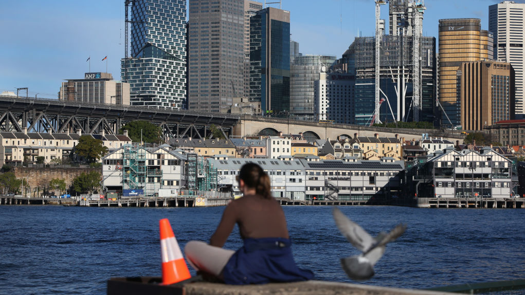 A woman sits for a moment and looks out towards the Sydney CBD from McMahons Point, July 05, 2021 in Sydney, Australia. /Getty
