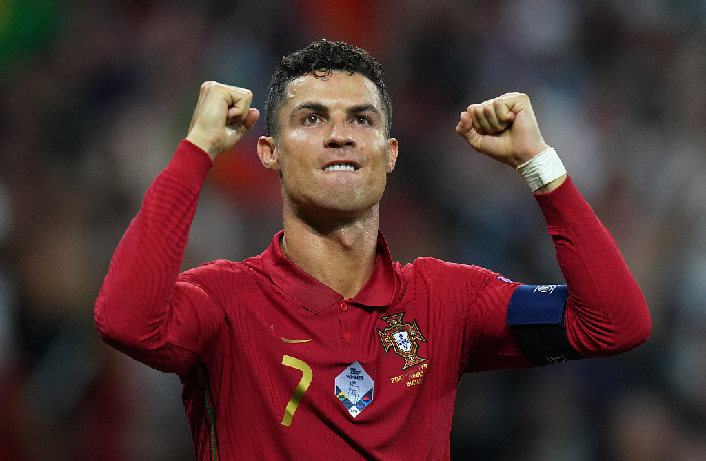 Cristiano Rolando of Portugal celebrates after scoring a goal in the UEFA European Championship Group F game against France at Puskas Arena in Budapest, Hungary, June 23, 2021. /CFP