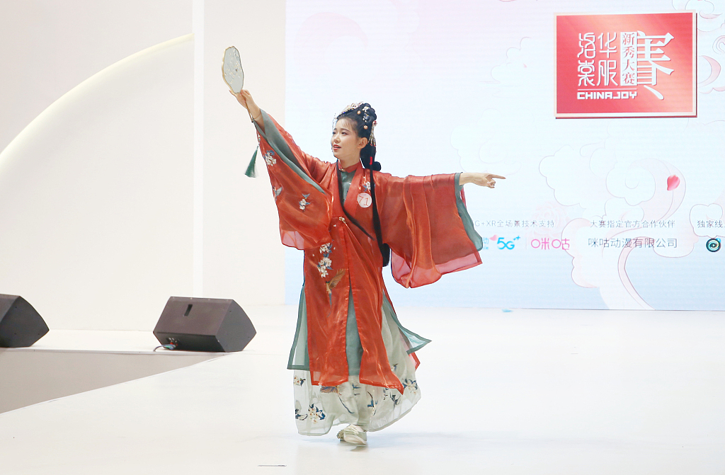 Hanfu, the traditional clothing of Han Chinese, is showcased during the 2021 show of ChinaJoy, known as the China Digital Entertainment Expo and Conference, which opened in Shanghai, east China, July 30, 2021. /CFP