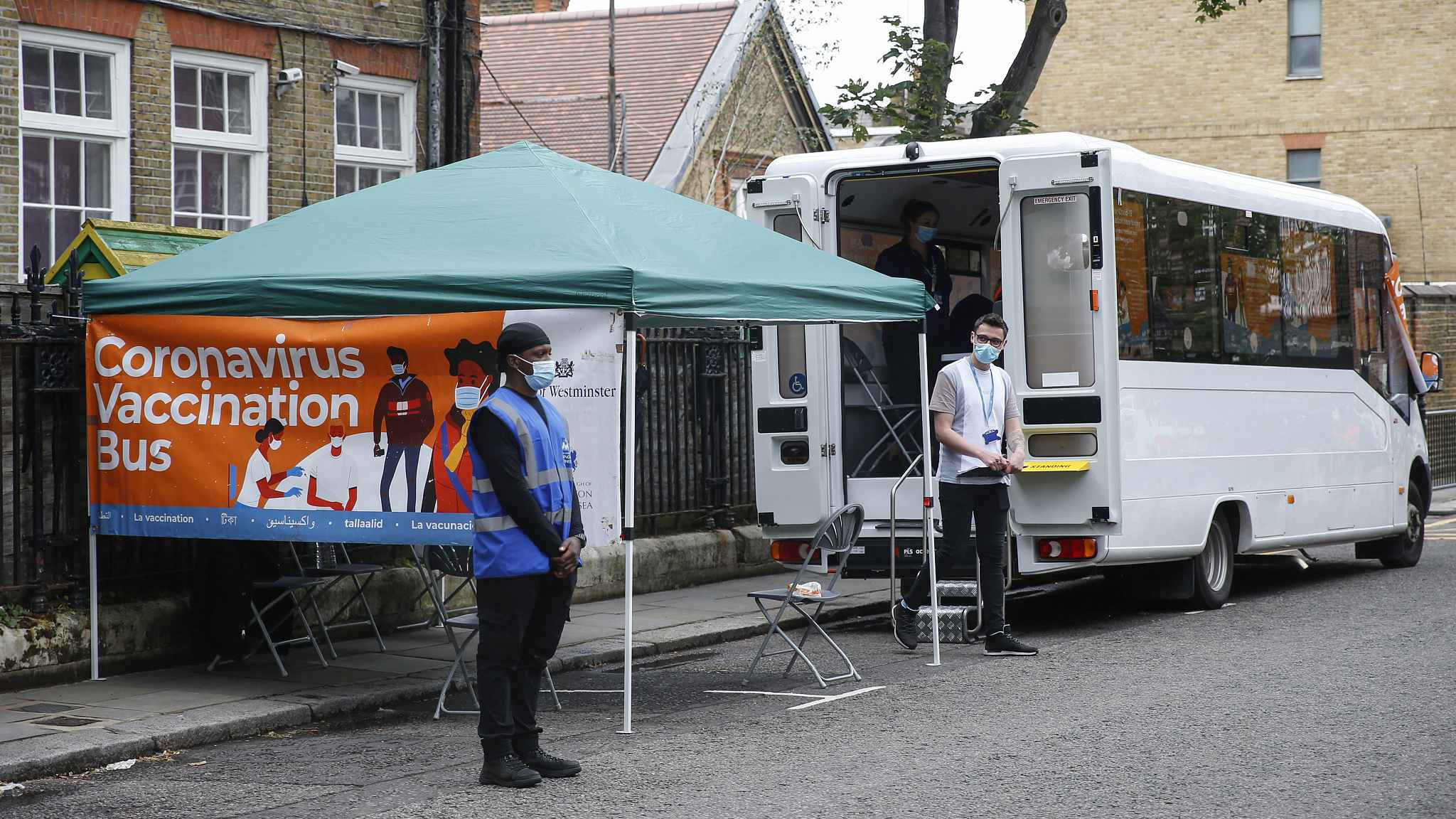 A coronavirus vaccination bus outside Park Walk Primary School in London, England, July 4, 2021. /CFP