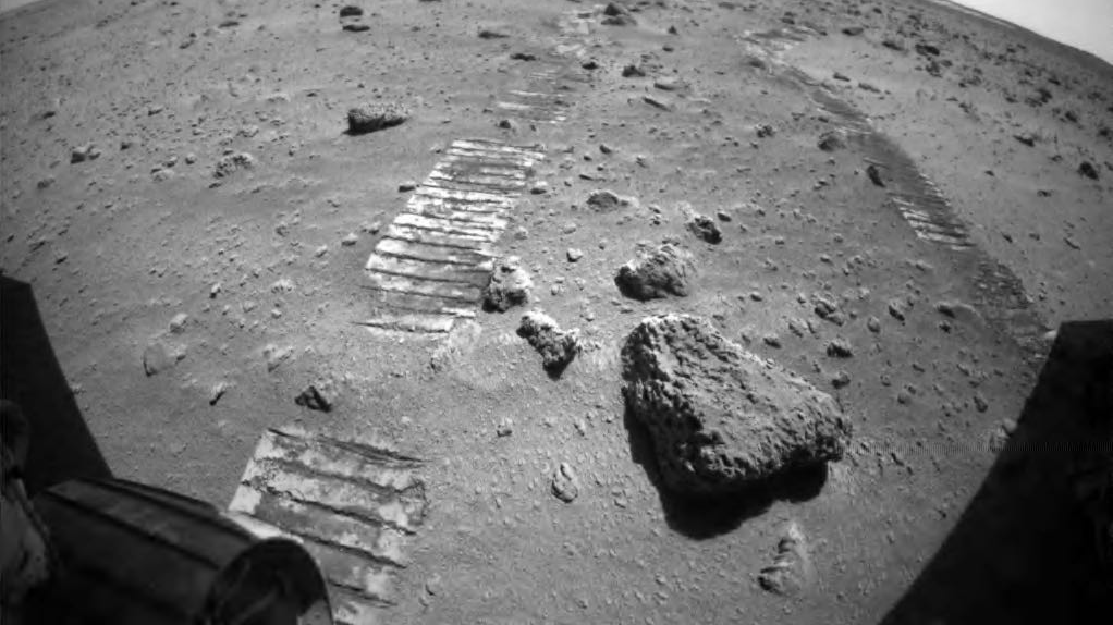 A picture of where China's Mars rover Zhurong just passed. /CNSA