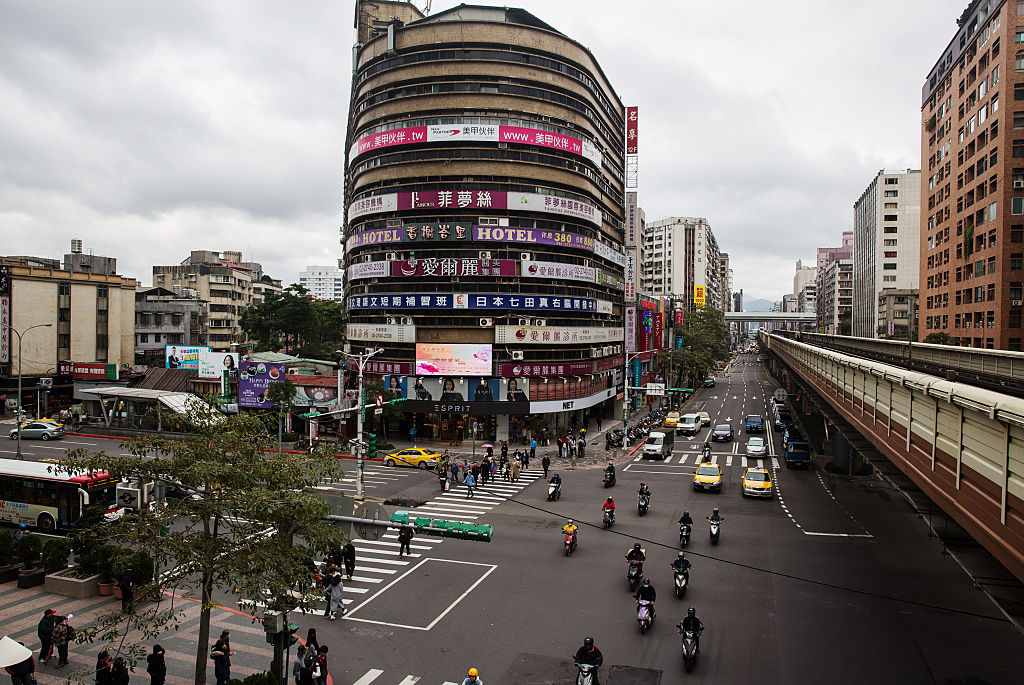 Traffic drives along a road near an elevated train track in Taipei, southeast China's Taiwan, January 13, 2016. /Getty