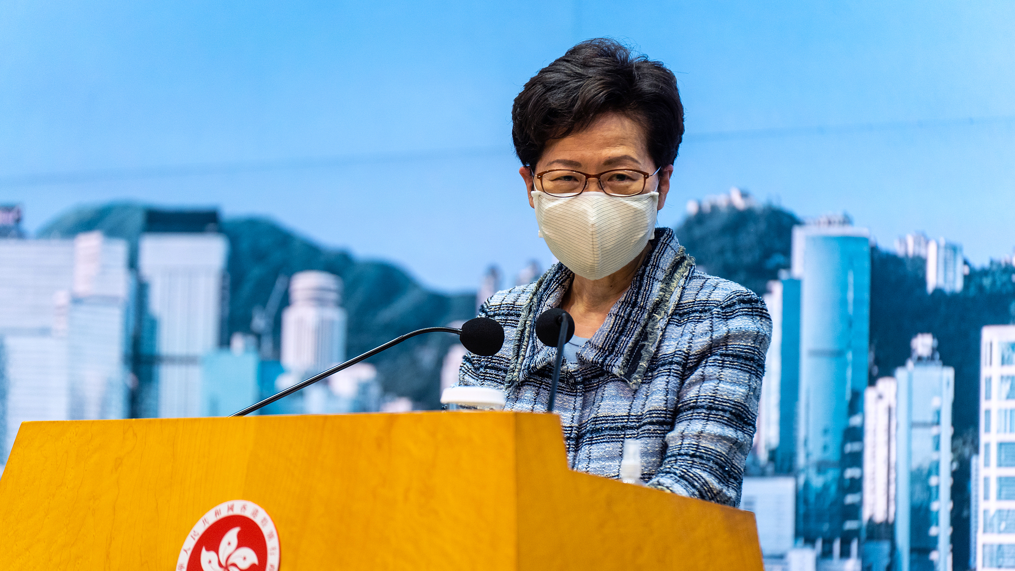 Chief Executive of the Hong Kong Special Administrative Region (HKSAR) Carrie Lam speaks to the press before attending the weekly meeting with the Executive Council.