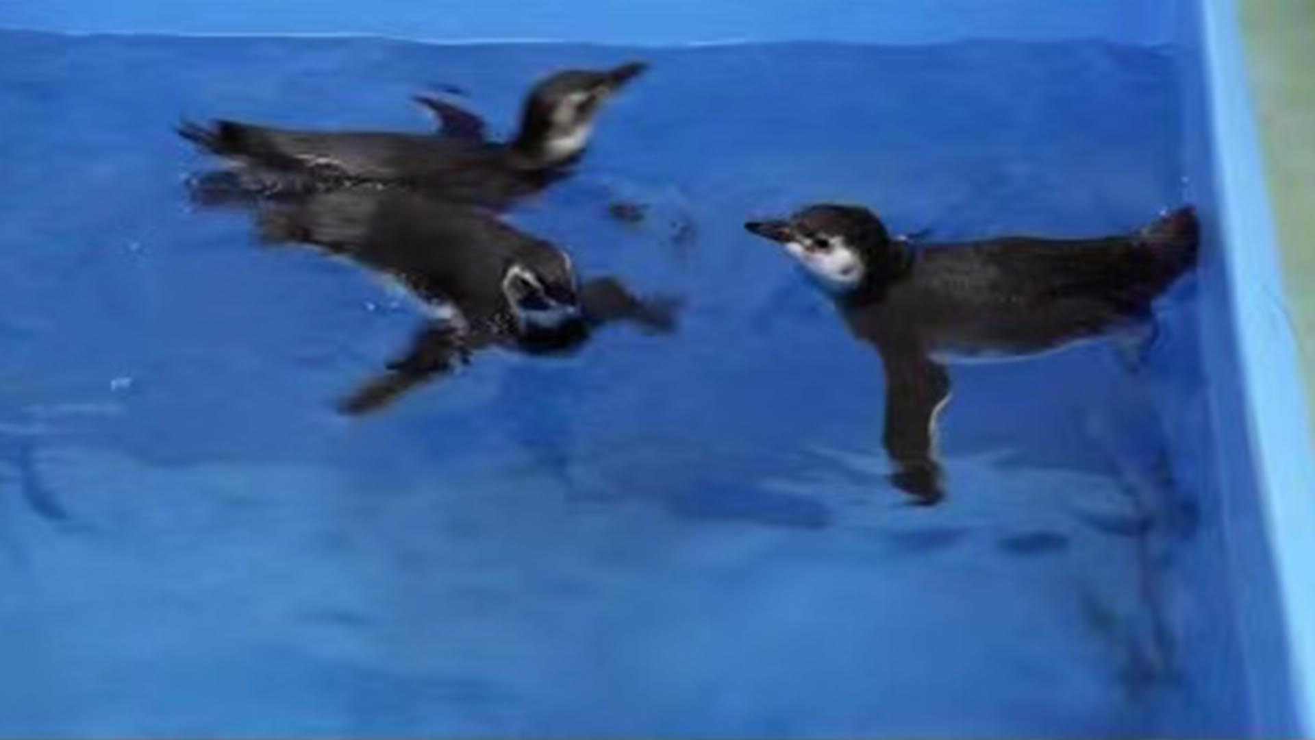 Four penguin chicks at Shedd Aquarium in Chicago have taken their first swim in what the aquarium says is an important milestone in their development.