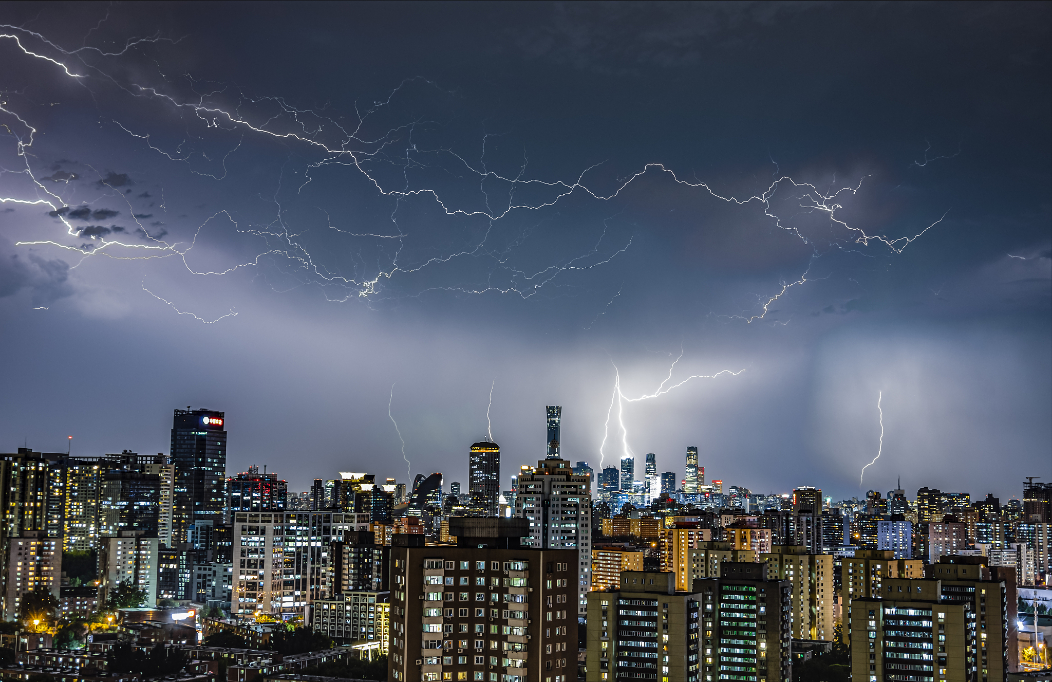 Beijing was hit by a thunderstorm last night. Photographs show lightening cutting through the night sky.