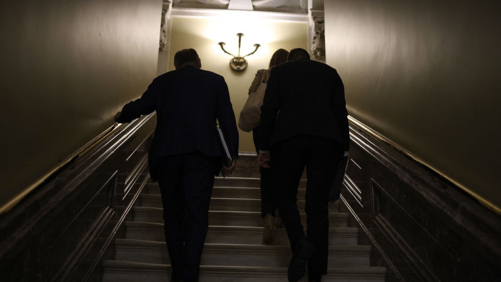 Brian Deese, National Economic Council director, Louisa Terrell, the White House legislative affairs director, and Steve Ricchetti, Counselor to U.S. President Joe Biden depart from a bipartisan meeting on infrastructure legislation at the U.S. Capitol in Washington, D.C., July 20, 2021. /Getty