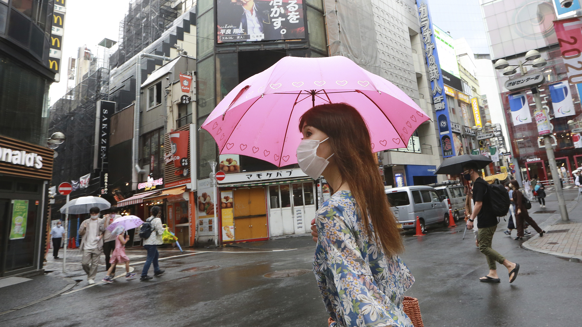 A woman wearing face masks to protect against the spread of the coronavirus walk on a street in Tokyo, August 17, 2021. /CFP