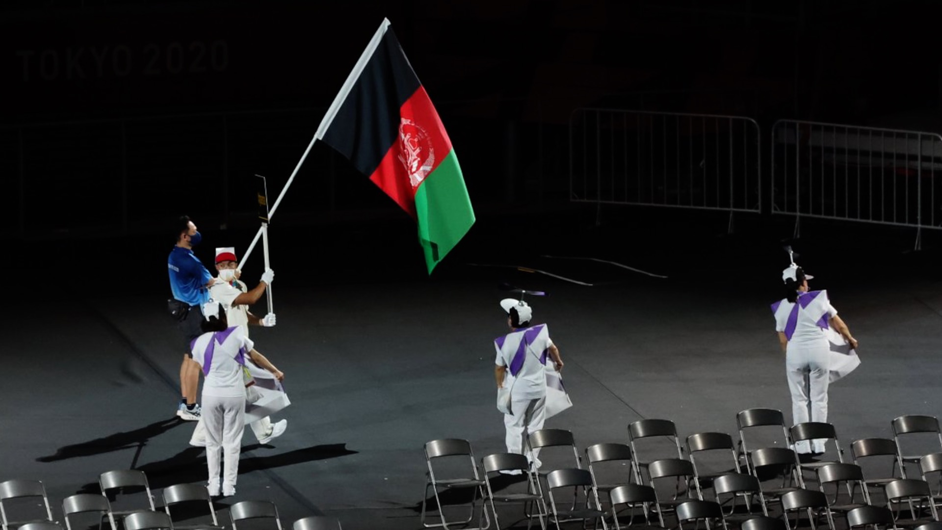 The flag of Afghanistan featured Tuesday night at the opening ceremony of the Tokyo 2020 Paralympics as a symbol of "solidarity and peace." The flag was held by a volunteer as no athlete from the country was able to reach Tokyo.
