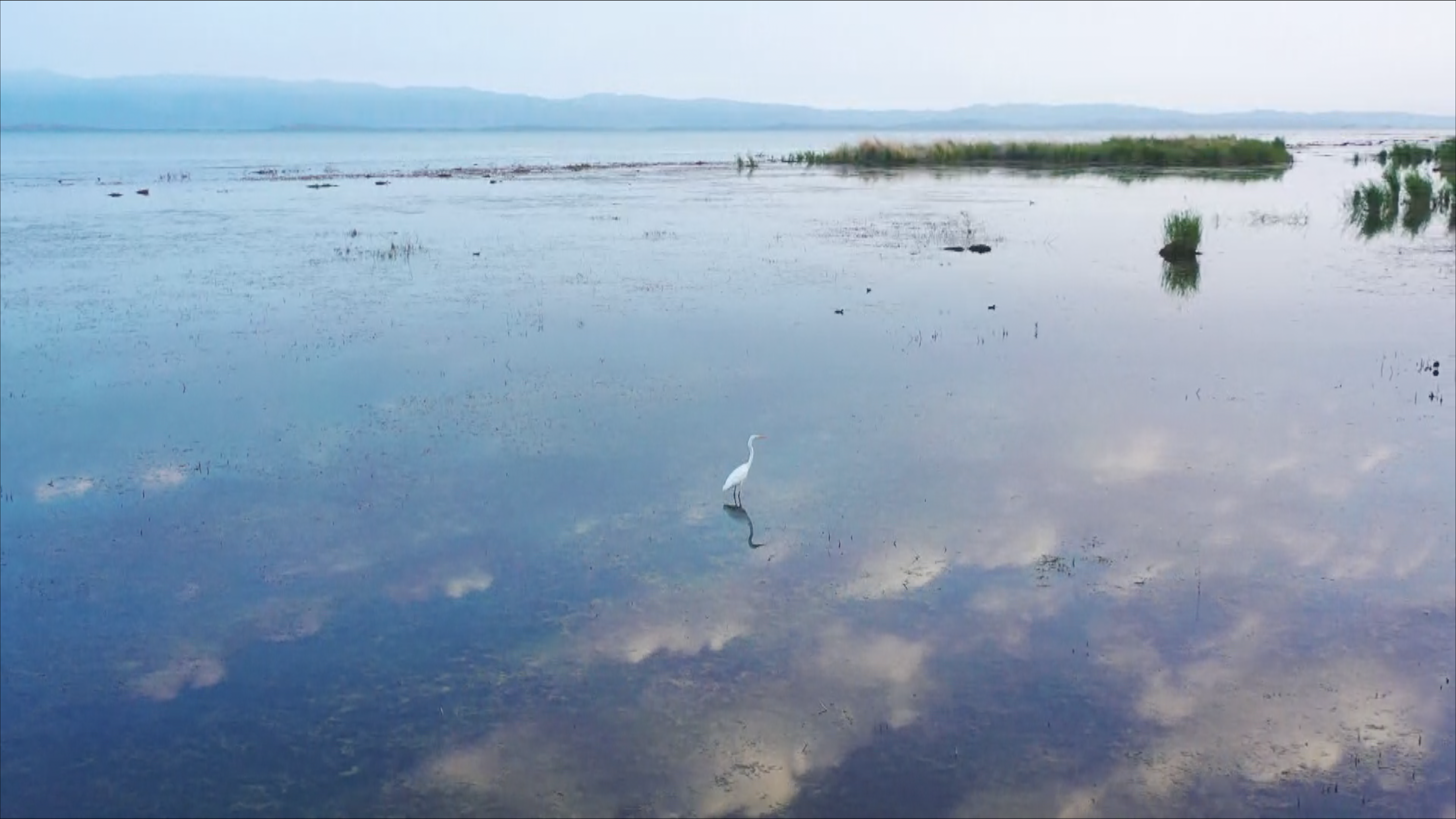 The lake, located in northwest China's Xinjiang Uygur Autonomous Region, has become a major habitat or stopover for migratory birds.